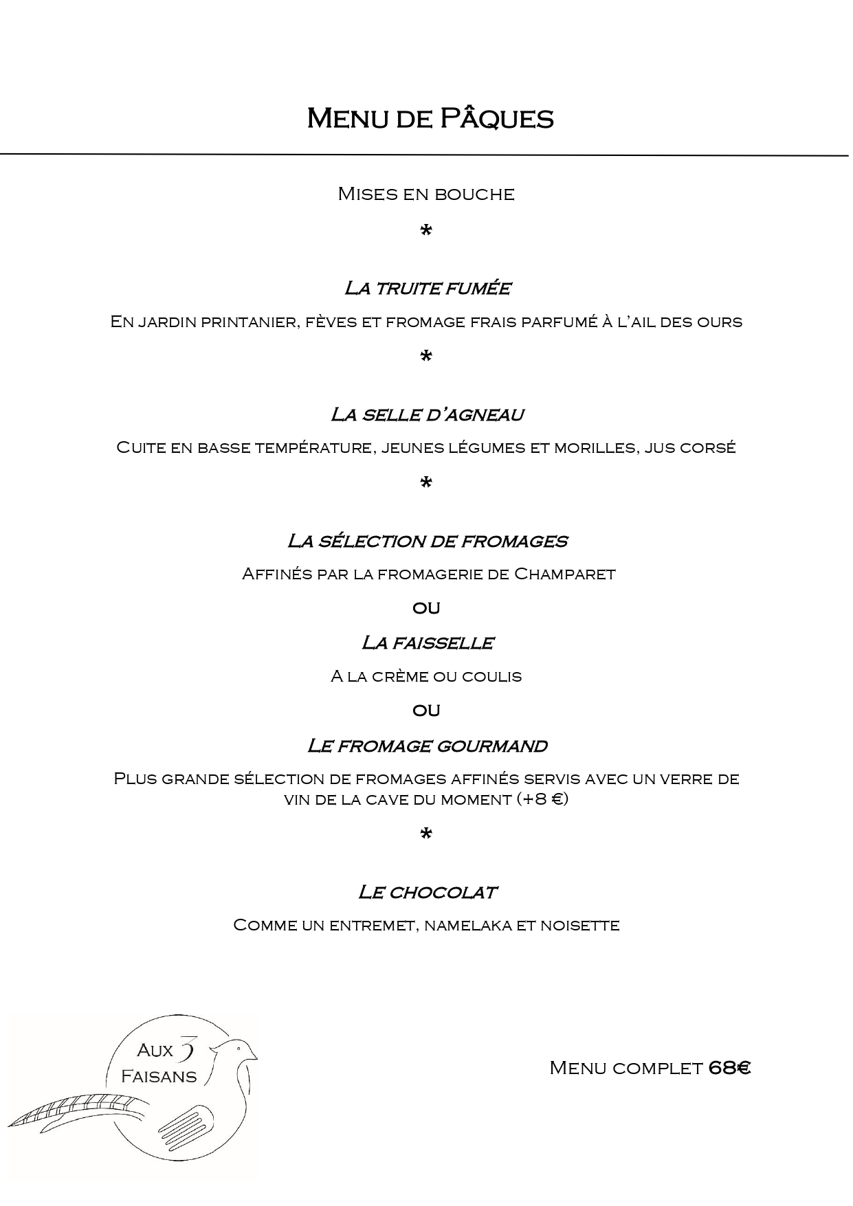 MENU DE PÂQUES